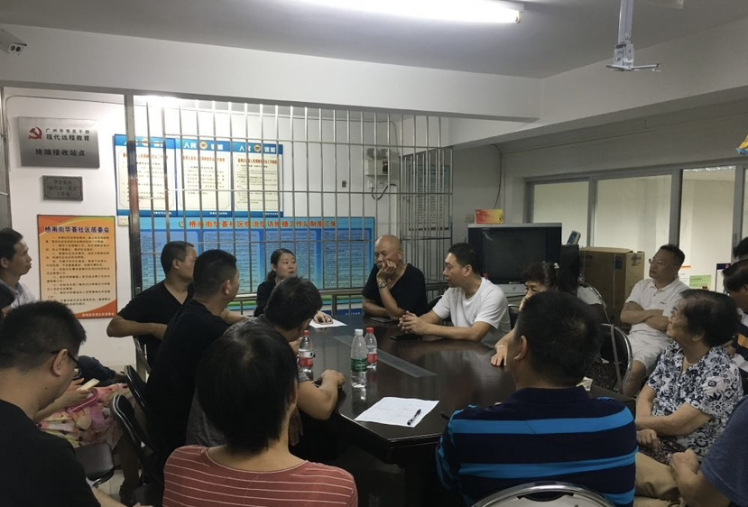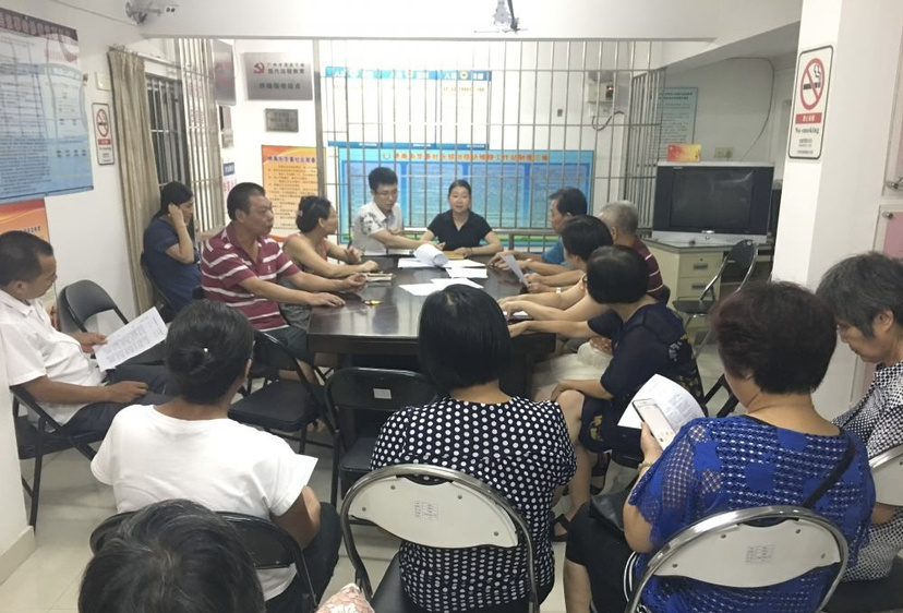 社区居委会组织不同楼层的业主商讨更换电梯事宜