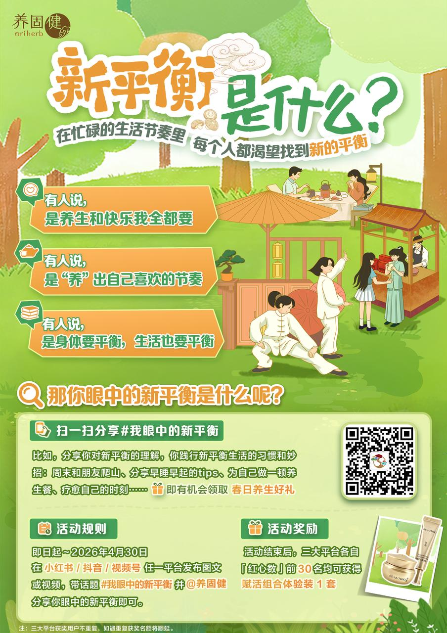 昼夜交替不息,生活的节奏从未停歇。春分只是一个起点,未来,养固健还将联合更多权威媒体,持续挖掘身边的“新平衡故事”,让养生不再是理念,成为可感知、可借鉴、可融入日常的生活样本,启发更多人开启追求新平衡生活的旅程,找到属于自己的那个“刚刚好”的时刻。