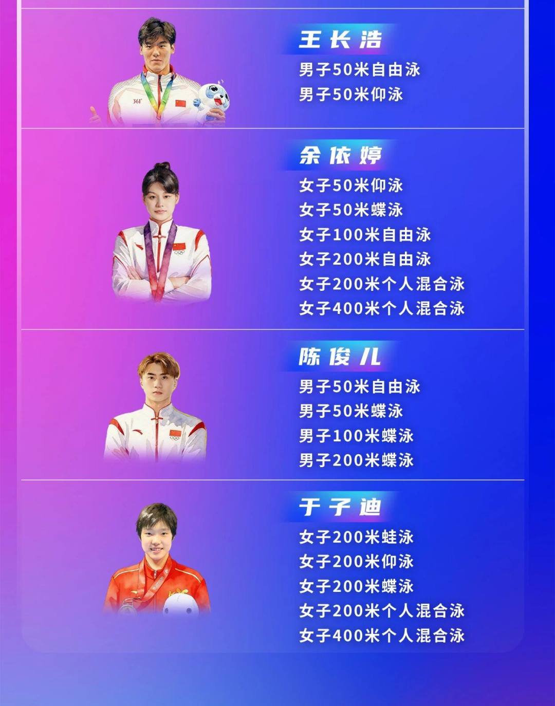 此次赛事与全国春季游泳锦标赛“双赛合一”,共约500名中外运动员参赛,其中包括多位奥运会、世锦赛奖牌得主。选手们将在34个个人单项中展开对决。