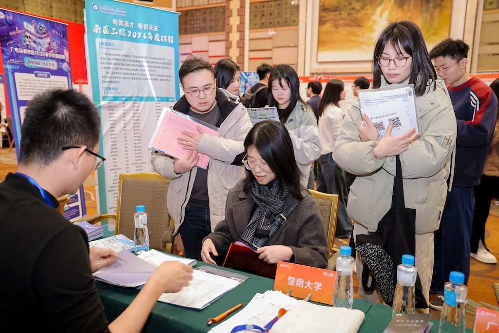 活动现场,天河区高端人才招聘专区人头攒动。在12家企业、单位的展位前,前来咨询的高校人才排起了队。