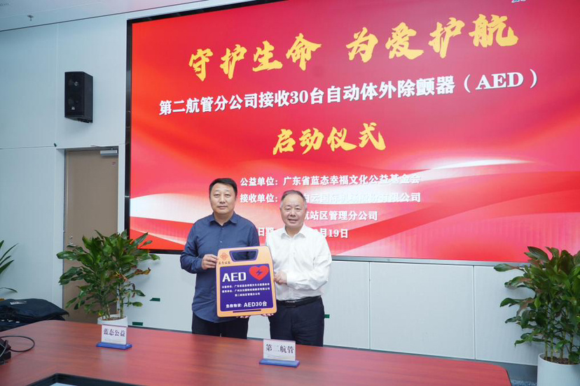 3月19日上午,广州白云国际机场T3航站楼内举行了一场简朴而意义重要的仪式——30台自动体外除颤器(AED)正式宣告启用。这批被誉为“救命神器”的急救设备,由公益单位广东省蓝态幸福文化公益基金会配置,将进一步完善T3航站楼应急救护网络,为往来旅客筑牢生命安全屏障。