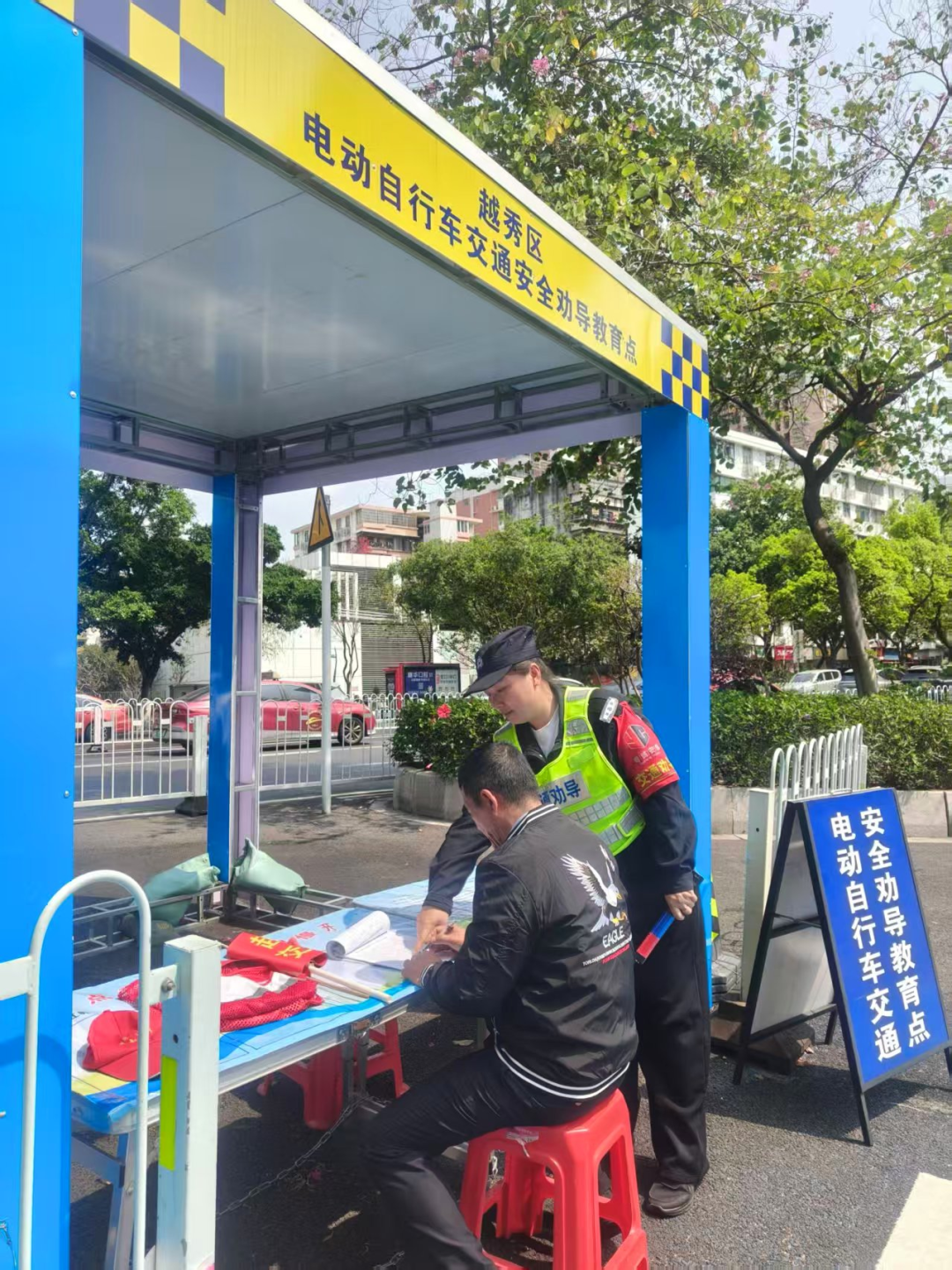 据介绍,经过三个多月的实践,曾经频发的电动车乱象明显减少,早晚高峰的路口秩序井然。为巩固治理成果,黄花岗街进一步细化服务举措:在环市东路466号前和区庄地铁站A出口设置了统一设计的规范劝导岗亭,张贴“早点走、靠右行、慢慢开”等温馨标语,营造潜移默化的文明氛围;同时,依托社区微信群、专题讲座等多元载体,拓宽宣传渠道,筑牢思想防线,推动交通安全知识走进千家万户。