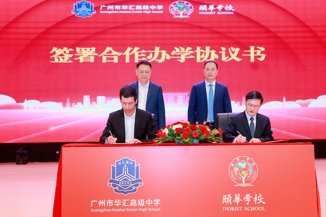 3月20日下午,广州市华汇高级中学与湖南颐华学校合作办学签约仪式在华汇高中演艺中心隆重举行。增城区政府领导、大湾区商界知名代表、两校董事会及管理团队、师生家长代表与媒体朋友齐聚一堂,共同见证这一推动穗湘教育协同发展的重要时刻。