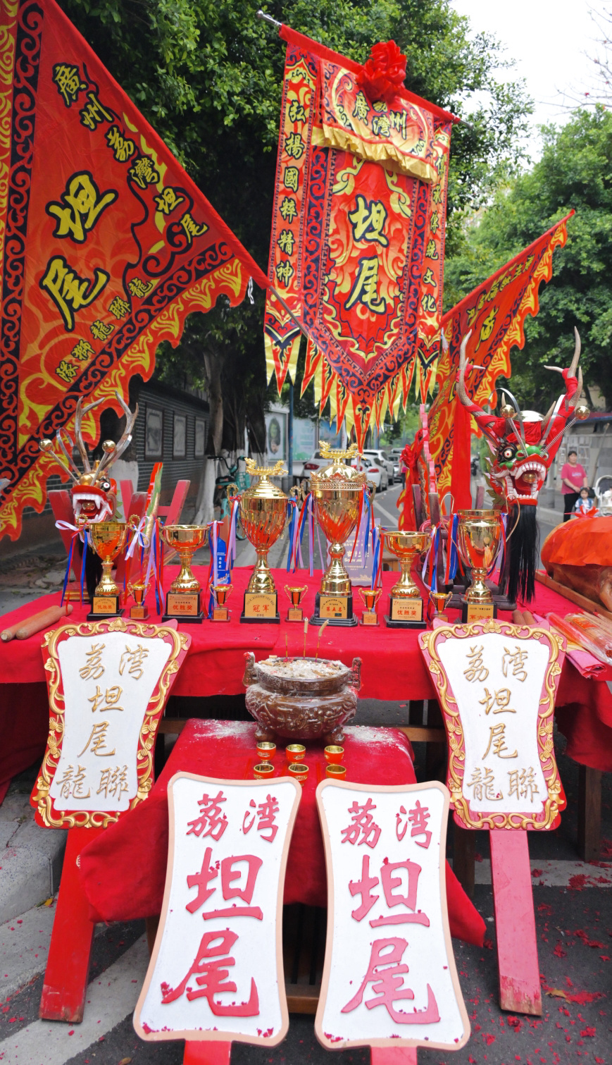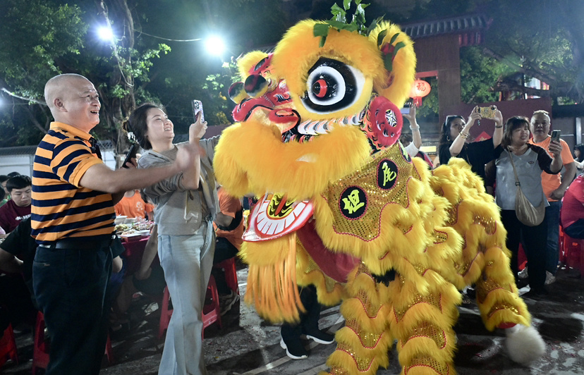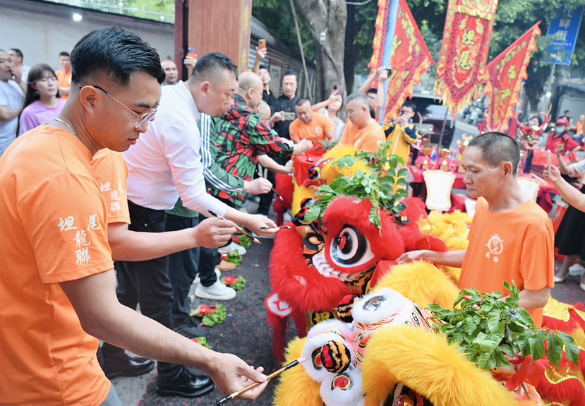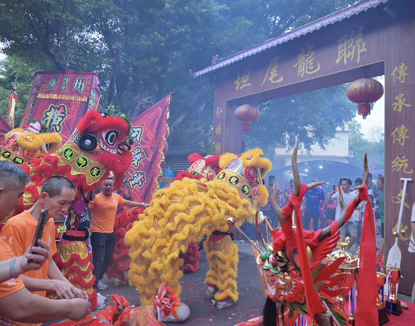 “今年,我们把去年打造的金龙龙船头‘请出来’,狮会今年新订做了两个醒狮头,举办点睛、采青仪式。一些友好村的龙船会兄弟也来聚会,一起祈求新一年龙马精神、风调雨顺。”坦尾龙联龙舟队队长、龙联龙狮队队长原志坚介绍。