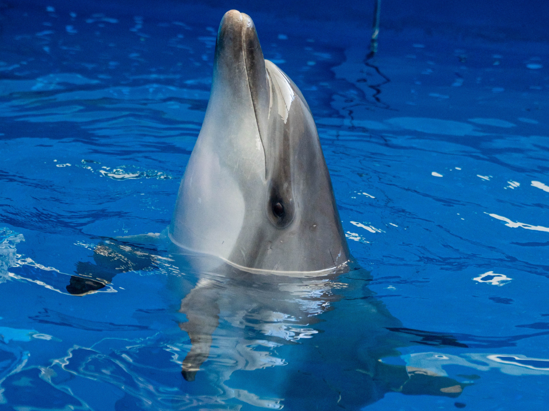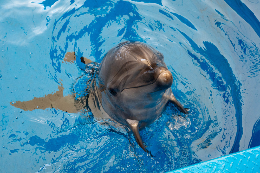 粘人的小可爱——M1弟弟。这位可是个天生的“显眼包”,灰白色的身体,腹部白里透粉,连吻部都是白色的,长得那叫一个俊俏!虽然看着像个威风凛凛的小伙子,骨子里却是个“妈宝男”。保育员走到哪,它就跟到哪,求贴贴、要摸摸,如果看到保育员在跟其他豚豚互动,它还会“吃醋”,游过来把脑袋往保育员手里塞,仿佛在说:“看我!摸我!我才是最乖的!”