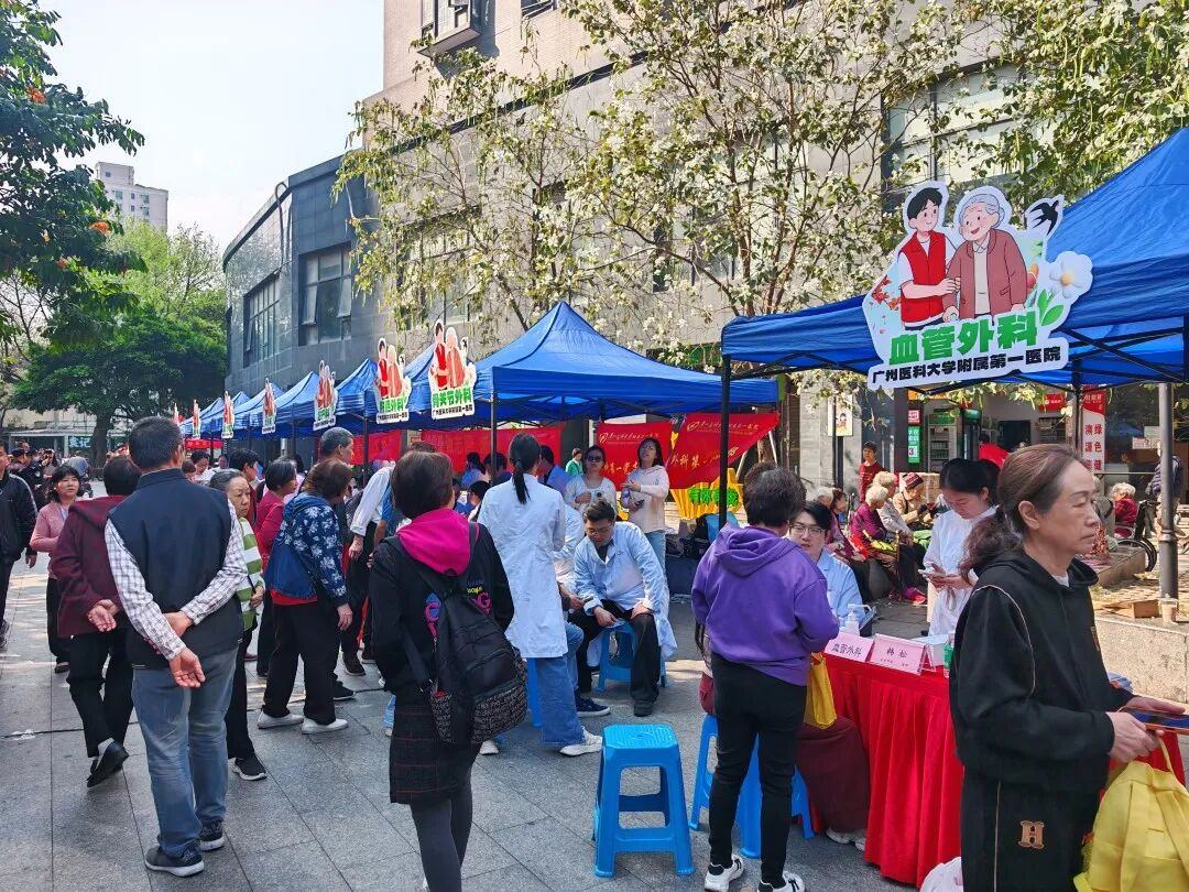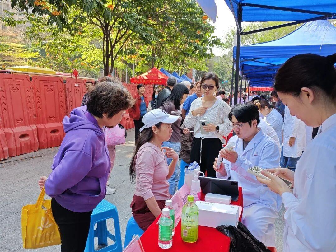讲座结束后,义诊服务正式展开。活动链接了广医一院多学科资源,现场设置了血管科、胃肠科、肝胆科、骨关节科、骨密度、妇产科、乳腺科、激光科等专科咨询摊位。其中骨密度检测摊位备受青睐,工作人员为长者检测并解读报告,给出春季养生建议。