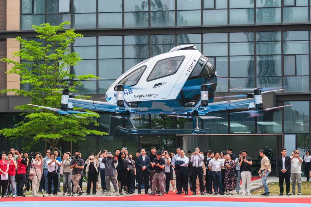 广东智翼科技发展有限公司董事长唐朝章介绍,EH216-S低空TAXI获民航局适航认证,配备16个机翼,即便出现多架机翼故障,仍可安全飞行并自动返航,待实现规模化商业服务后,将成为地面交通的重要补充,助力构建空地一体出行新场景,未来有望在白云湖打“飞的”。