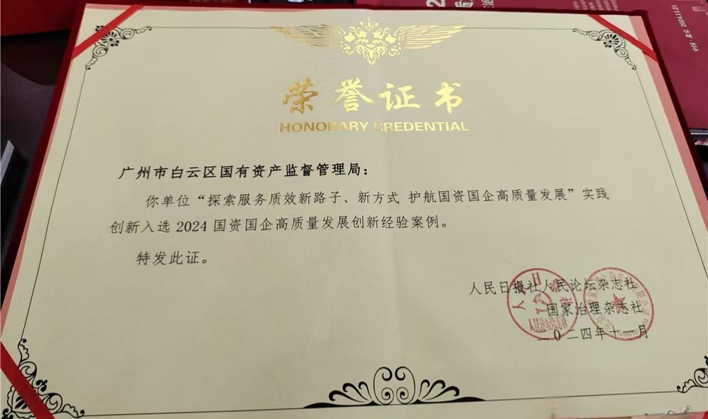 2024年11月,白云区智慧国资系统建设项目入选全国30大创新案例