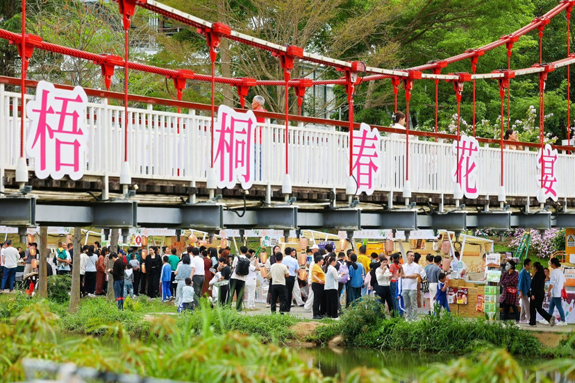 春风送暖,繁花满城。3月20日,深圳市首届大梧桐春花宴在罗湖区梧桐山河碧道正式启幕。活动以花为媒、以素会友,融合赏花、美食、国风、低空旅游等多元体验,打造沉浸式春日文旅盛宴,活动持续至3月29日,成为鹏城春季热门打卡地。