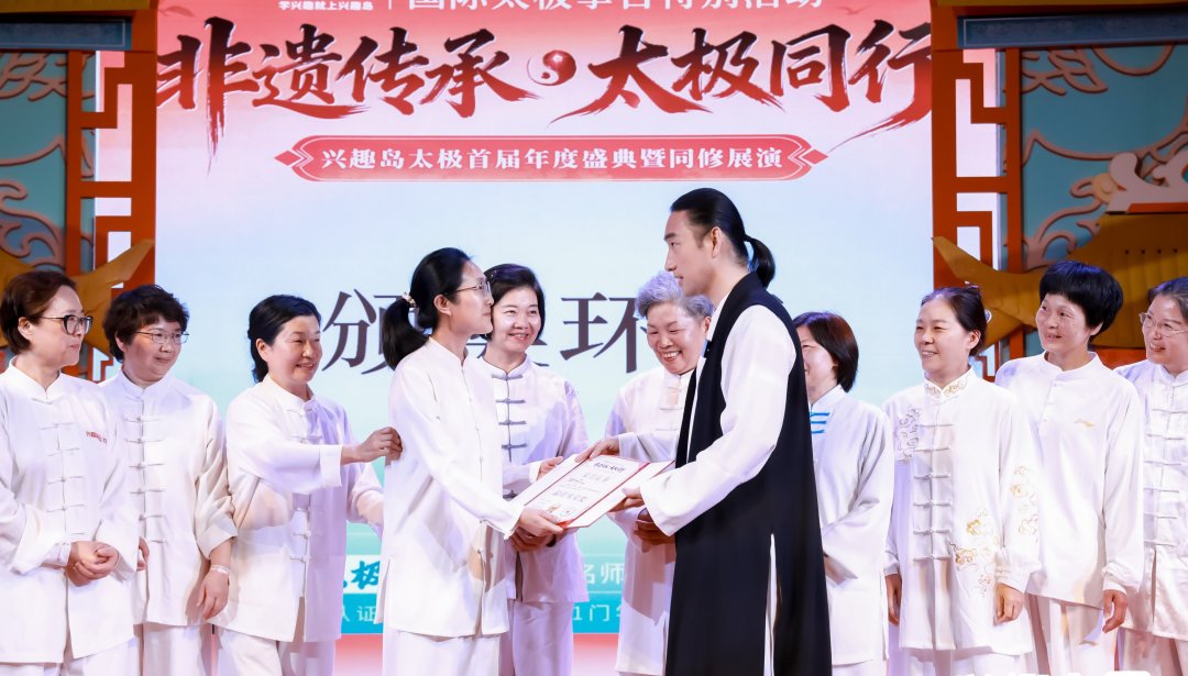 盛典现场特设荣誉加冕环节,李在峰亲自为优秀学员颁发传承人证书,正式赋予他们“太极非遗传播者”的身份。