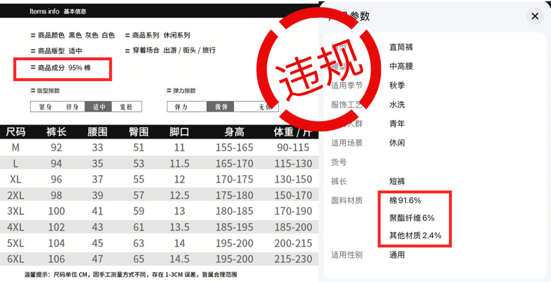 典型违规案例二:材质含量不符