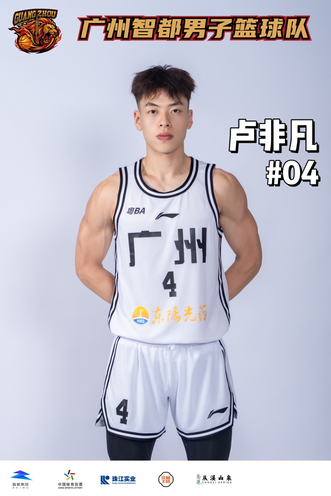 2007年出生的卢非凡,身高183cm,司职后卫,现就读于广东工业大学,也是球队后场最具潜力的新生代球员。从青少年赛场的锋芒初露,到CUBAL冠军学府的系统淬炼,年仅19岁的他,成功跻身广州队“粤BA”大名单,为广州队的后场注入了极具冲击力的青春活力。