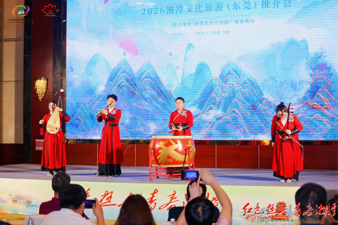3月20日,“红色热土 青春湘潭”2026湘潭文化旅游(东莞)推介会在广东东莞举行。活动由湘潭市文化旅游广电体育局主办,湘潭、东莞两地重点旅行社、景区景点、文旅企业代表等齐聚一堂,共同见证两地文旅同业在线路互推、客源输送等方面达成多项合作共识,为第六届湖南旅游发展大会预热造势。现场诚邀大湾区朋友走进湘潭,瞻仰伟人故里,漫步千年古街,感受夜间活力,共赏“红色热土 青春湘潭”的独特魅力。
