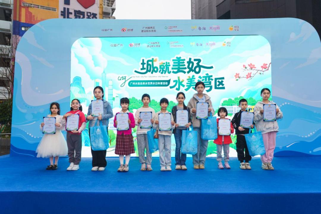 水的美好,不仅流淌在城市的脉络中,更藏在孩子们妙趣横生的画笔下。11位“水美湾区”公益绘画征集获奖者登台领奖,他们的作品在展示区集中亮相,将环保理念与艺术创意完美融合,描绘出广州水清岸绿的美好图景。孩子们在画作前合影留念,用童真视角传递节水决心,这份荣誉也成为他们持续传播环保理念的动力。