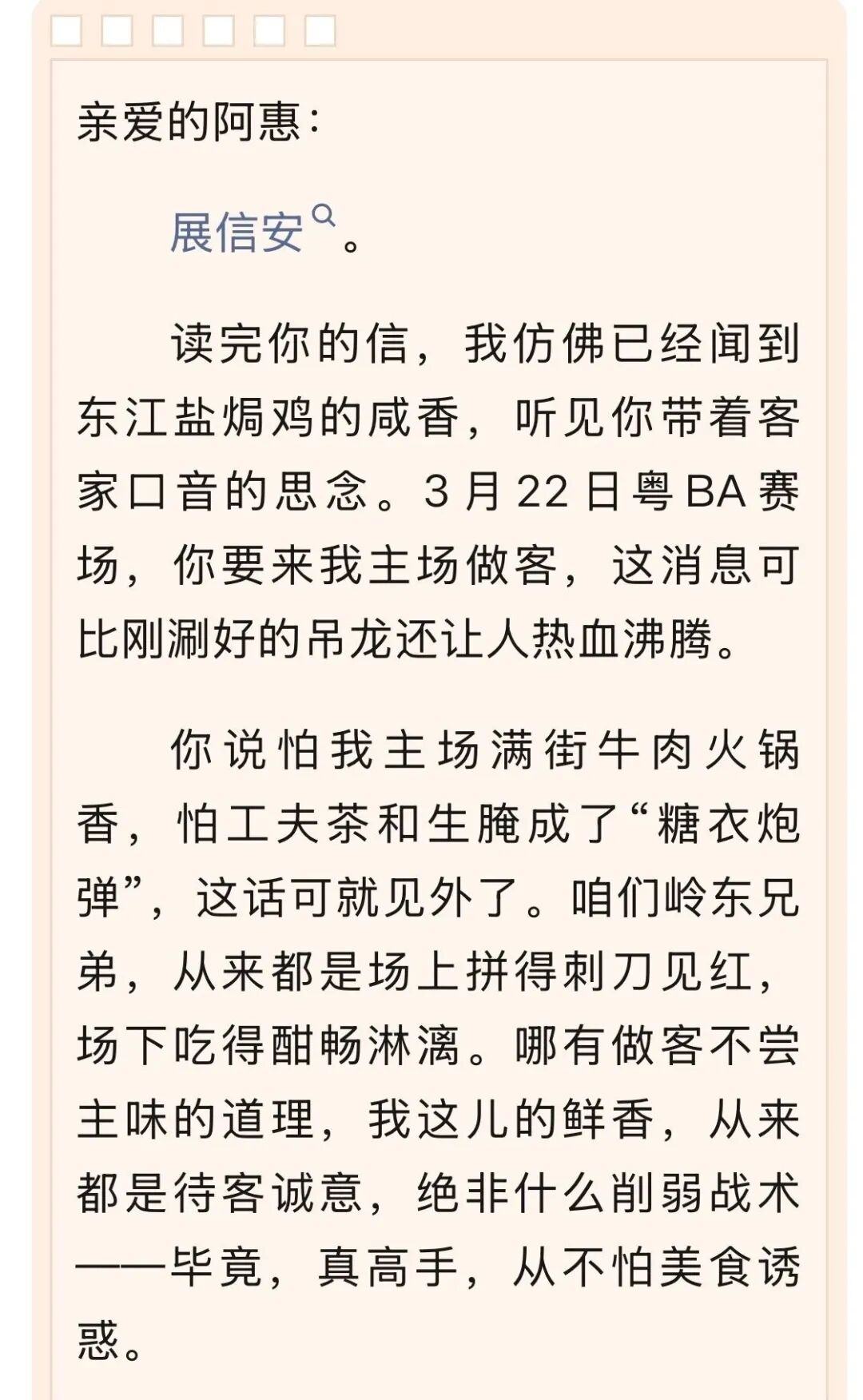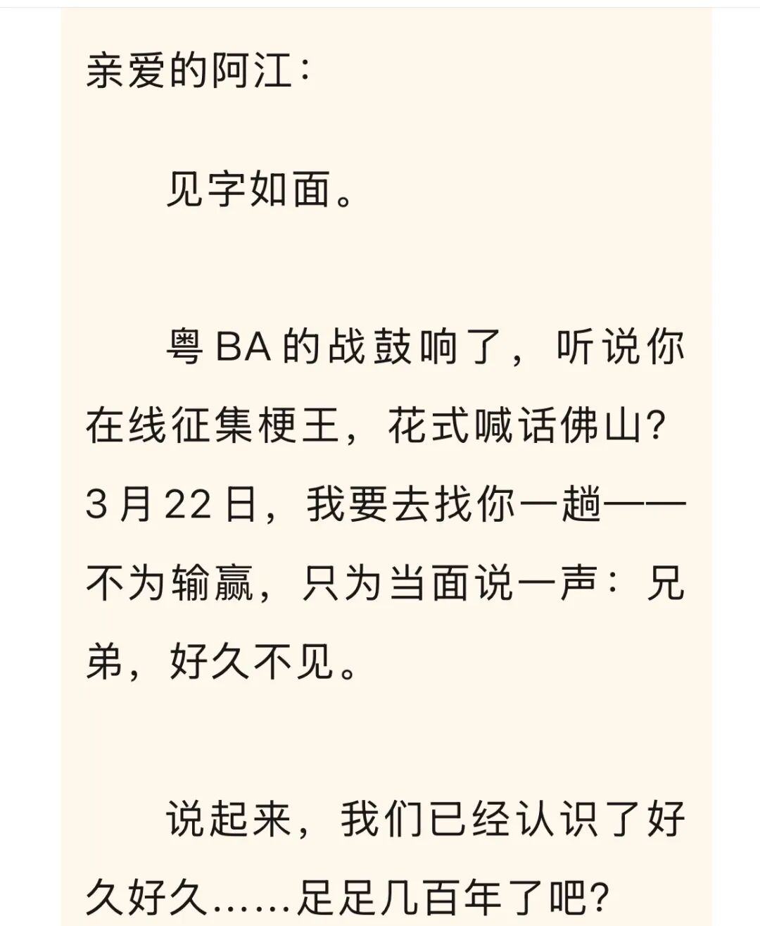 佛山给江门写了一封信: