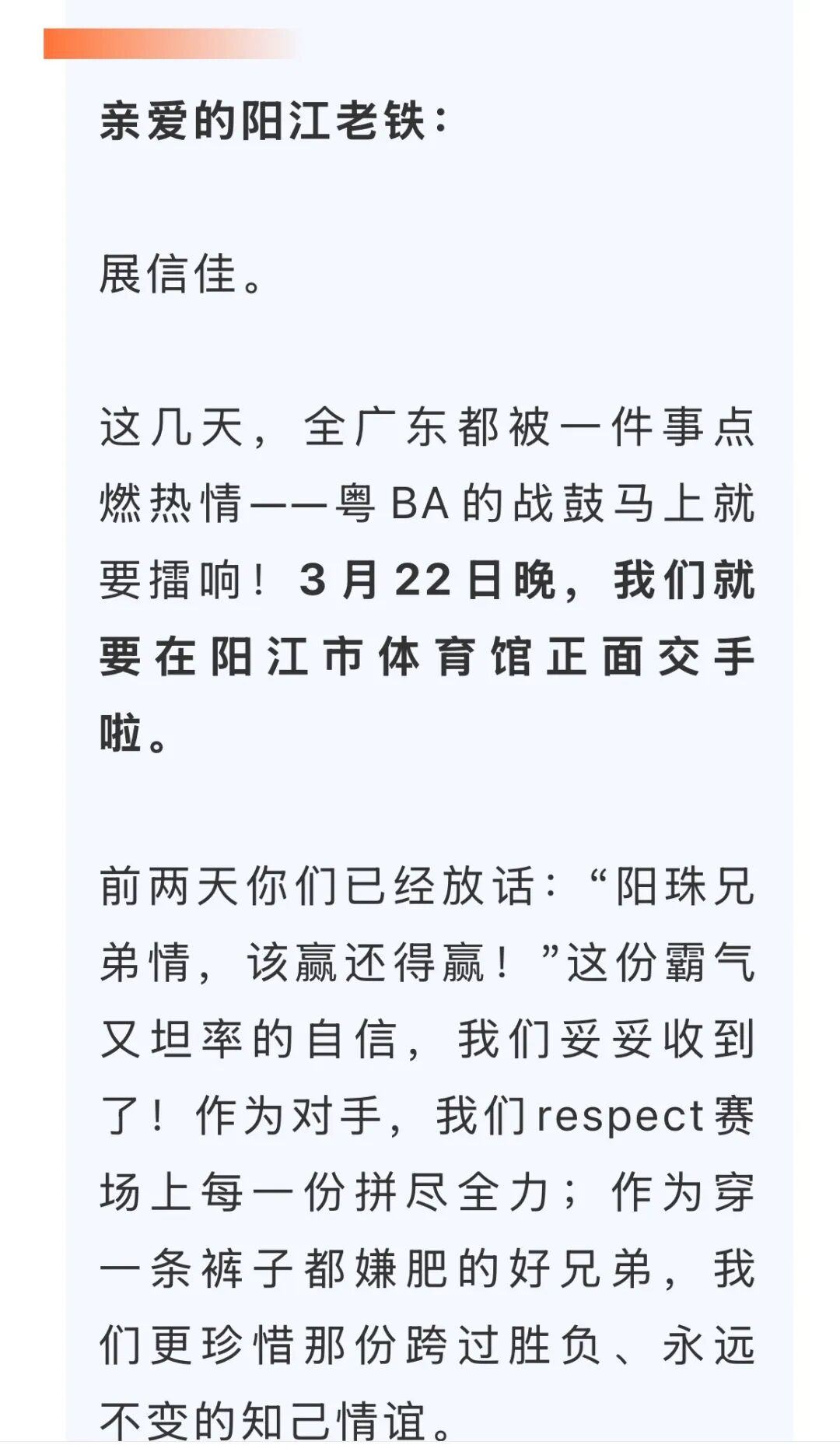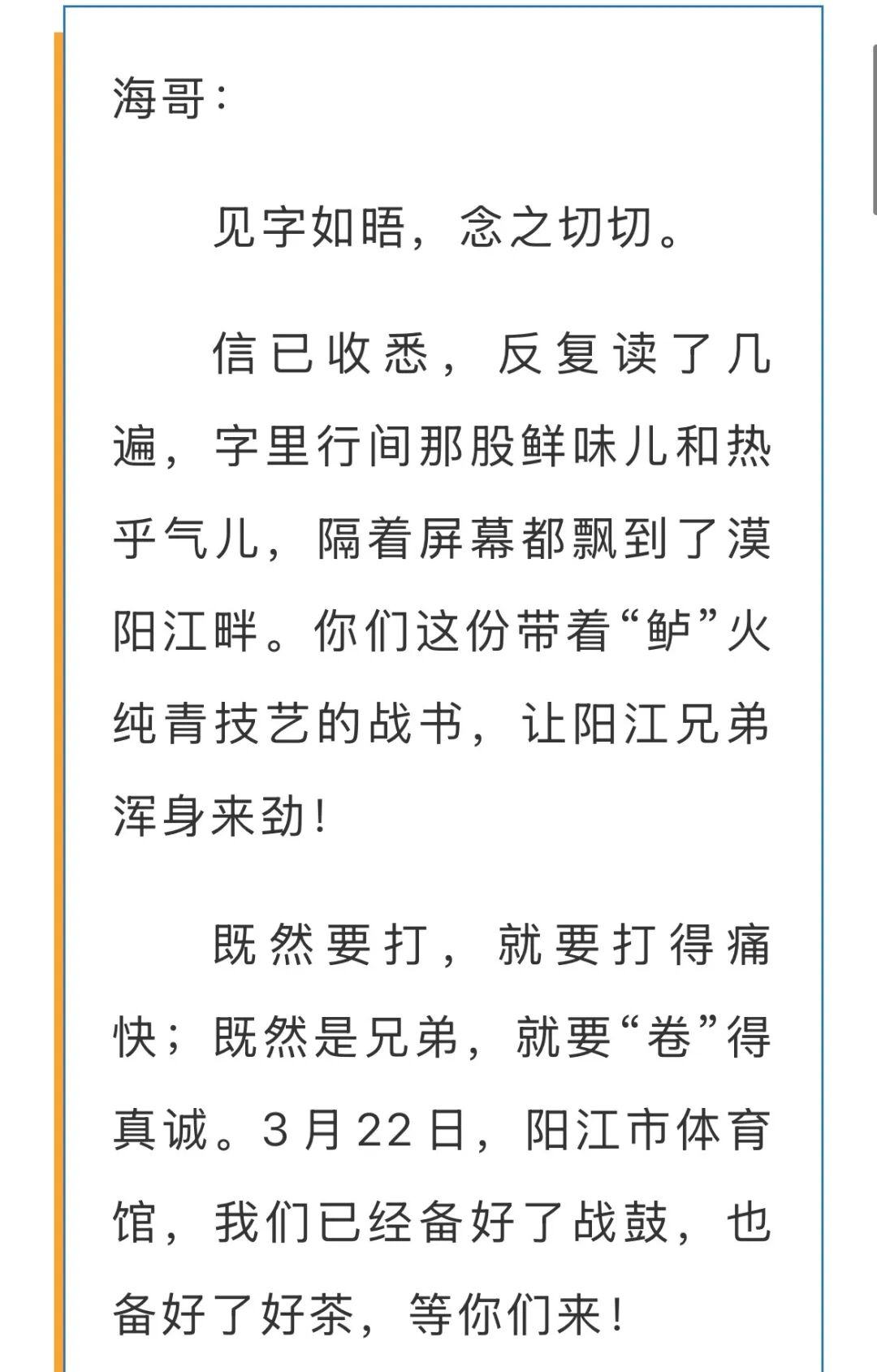 随后珠海向阳江下了一份“战书”