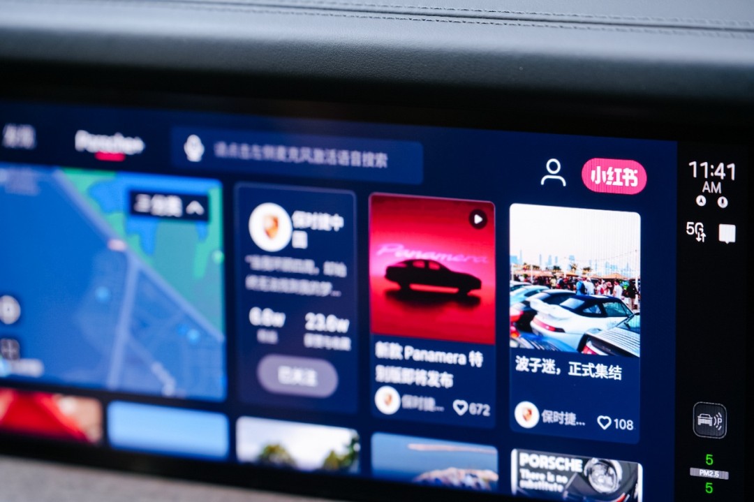 此外,保时捷将深受年轻群体喜爱的社交平台“小红书”融入车载场景。双方深度共创的定制版“小红书”APP在新款Panamera尽享版座驾中首次亮相。该应用将陆续搭载于保时捷2025年款及后续生产的911、Cayenne、Panamera、Taycan及纯电动Macan车型。除常用功能外,保时捷车载定制版小红书还带来三大亮点功能:“Porsche+”专属资讯空间,让精选内容与品牌动态触手可及;智能的AI路书,可一键生成个性化自驾路线;便捷的APP内语音搜索,帮助用户在专注驾驶的同时,也能探索精彩。