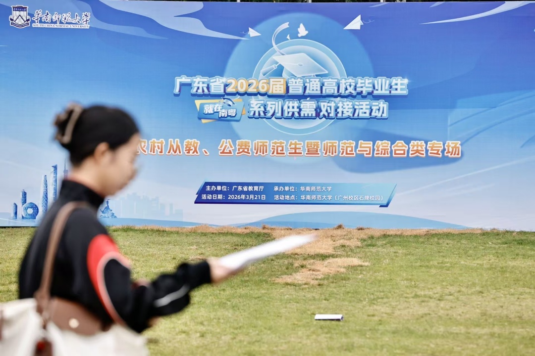 3月21日,“就在南粤”广东省2026届普通高校毕业生系列供需对接活动——农村从教、公费师范生暨师范与综合类专场在华南师范大学石牌校园西区田径场举行。
