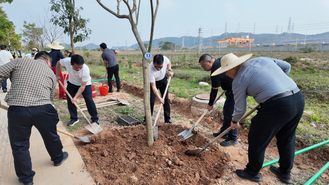 在广州侨界“同心林”植树活动环节,各位嘉宾配合默契地栽下一株株海南相思、紫花风铃等苗木。这片“同心林”选址于广州东部公铁联运枢纽旁,不仅是践行“绿美广州”生态建设的实际行动,更是立足枢纽优势、链接侨界资源、服务高质量发展的战略考量,寓意着广大侨胞与家乡发展根脉相连、同心同向。