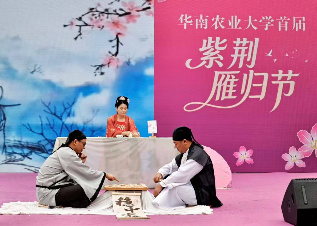 广东擂茶配鲜婆饼、广西油茶配柿子片、贵州紫茶配刺梨果冻、重庆黄精茶配上豆干、安徽石斛花茶配上铜陵白姜……3月21日,华南农业大学首届“紫荆雁归节”在该校大草坪启幕。来自粤、桂、皖、黔、渝五省(自治区、直辖市)的200余名“头雁”学员携家乡特色风物重返母校,集中展示乡村产业振兴的丰硕成果。