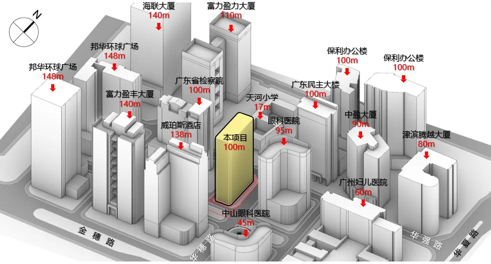 珠江新城A3-3(B)地块项目位于华强路与华穗路交汇处西南角,东侧为中山大学中山眼科中心(珠江新城院区),南侧为威珀斯酒店,西侧为广东省人民检察院,北侧为广州市天河第一小学(华穗校区)。广州日报在2023年2月曾报道,这是深圳市属国企投资控股有限公司在省会广州开发的首个“异地窗口”,建筑功能为酒店、办公等。(详见链接: https://huacheng.gz-cmc.com/pages/2023/02/08/582bbda4c1944f6792c71b1a79adad2c.html )