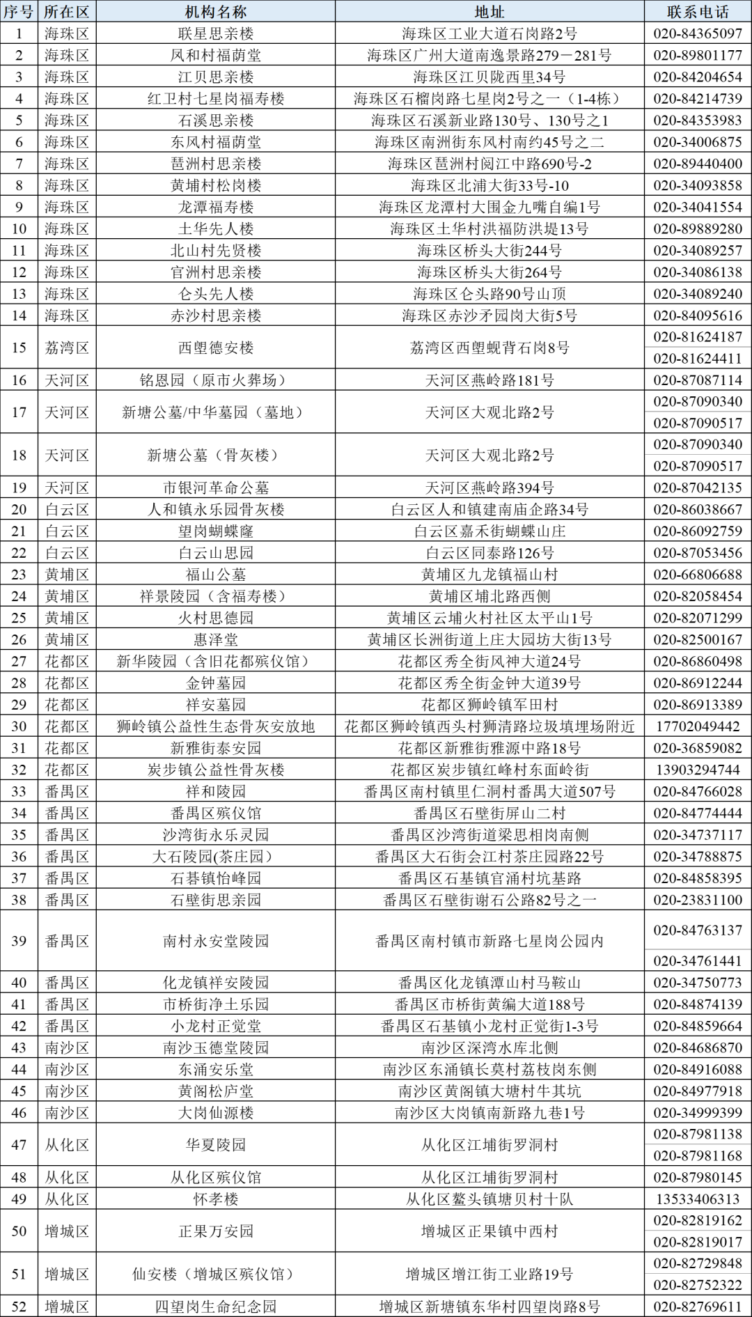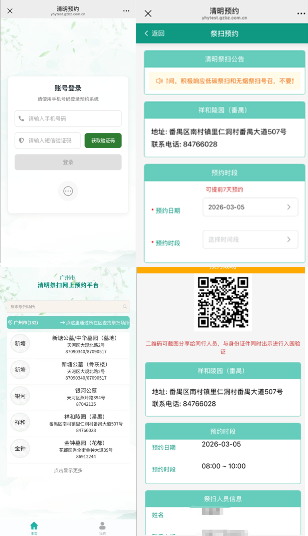 市民可进入预约平台首页查询须预约祭扫的场所地址和服务电话,也可通过“广州民政”微信公众号或广州市民政局网站查找“广州市民政局关于2026年清明祭扫工作的通告”“广州市2026年预约祭扫场所名录”获取。
