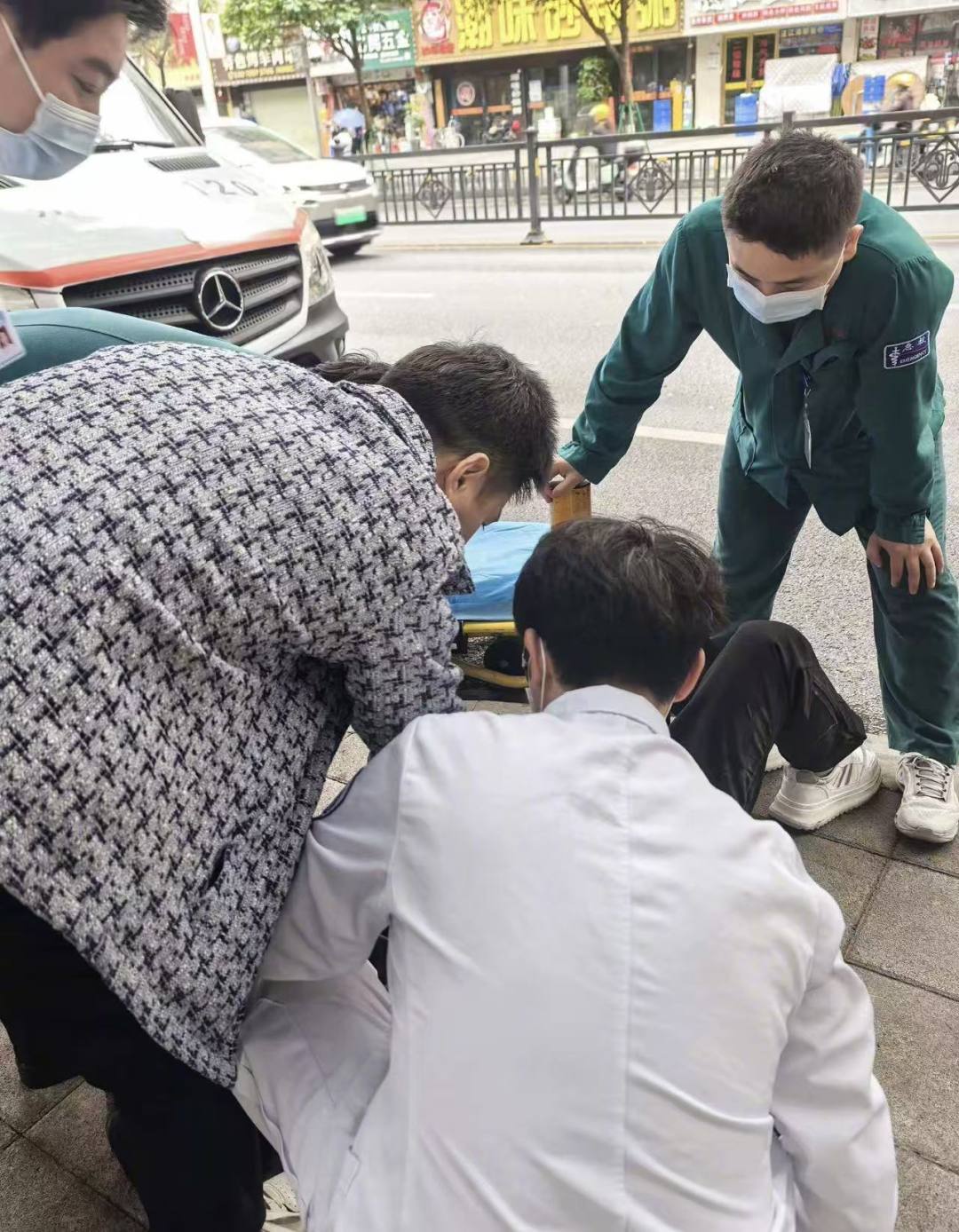 “不当搬运可能造成二次伤害!”首先冲上前的李裕城有着丰富的重症监护经验,于是他与一名路人默契配合,以专业的“平托”方式,将伤者平稳转移至安全区域。安顿好伤者后,他立即拨通了120急救电话。此时,路过的何彦芳也迅速加入了救援队伍。