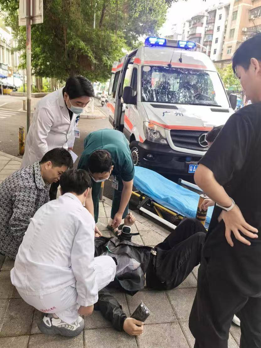 通过120得知伤者将被转运至南方医院后,李裕城立即联系医院急诊科,详细说明事故地点、伤者伤情及现场情况,为院内急救团队开启绿色通道作好了准备。何彦芳则守在伤者身旁,持续进行言语安抚,有效缓解了他的紧张与恐惧情绪。