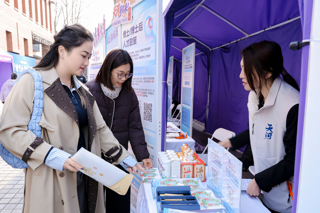 在政策咨询专区,天河人才服务专员详细讲解人才补贴、落户支持等扎根天河的专属红利,“博士毕业生可享10万—20万元安家费,博士后出站补贴达30万元”的政策解读,让不少学子边听边用手机认真记录。