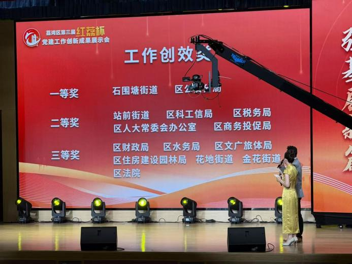 大会现场观看了石围塘街道荣获广东省“先锋杯”一等奖作品——《破局 领航 焕新——荔湾“山村”模式开创城中村改造新范式》,该作品展现了以党建为引领推进山村城中村改造的创新实践,引发现场人员热烈反响。