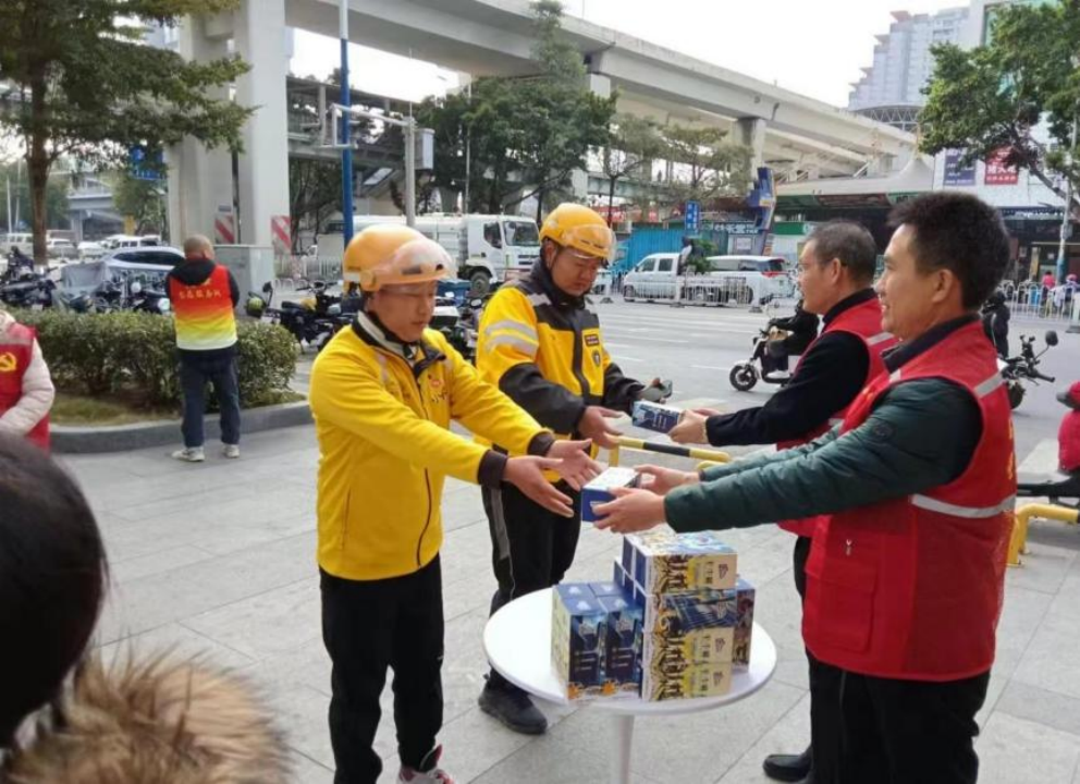 滘口社区与结对单位“送暖”,服务新就业群体。