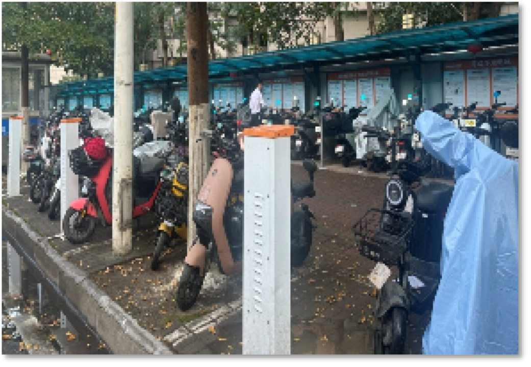 芳彩社区加装充电桩318个,满足600余辆车充电需求。
