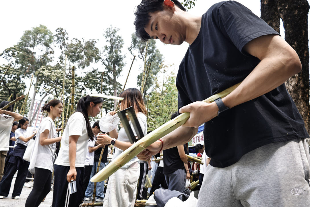 “训练完能吃到这么清甜多汁的甘蔗,特别解暑,特别开心!”体育教育学院2024级的赵锐琦同学笑着说道。运动训练学院2025级的邱茂烨也兴奋地表示:“没想到分量这么足,下课过来还能领到,看到这么多同学一起排队分享,感觉整个校园都甜滋滋的。”