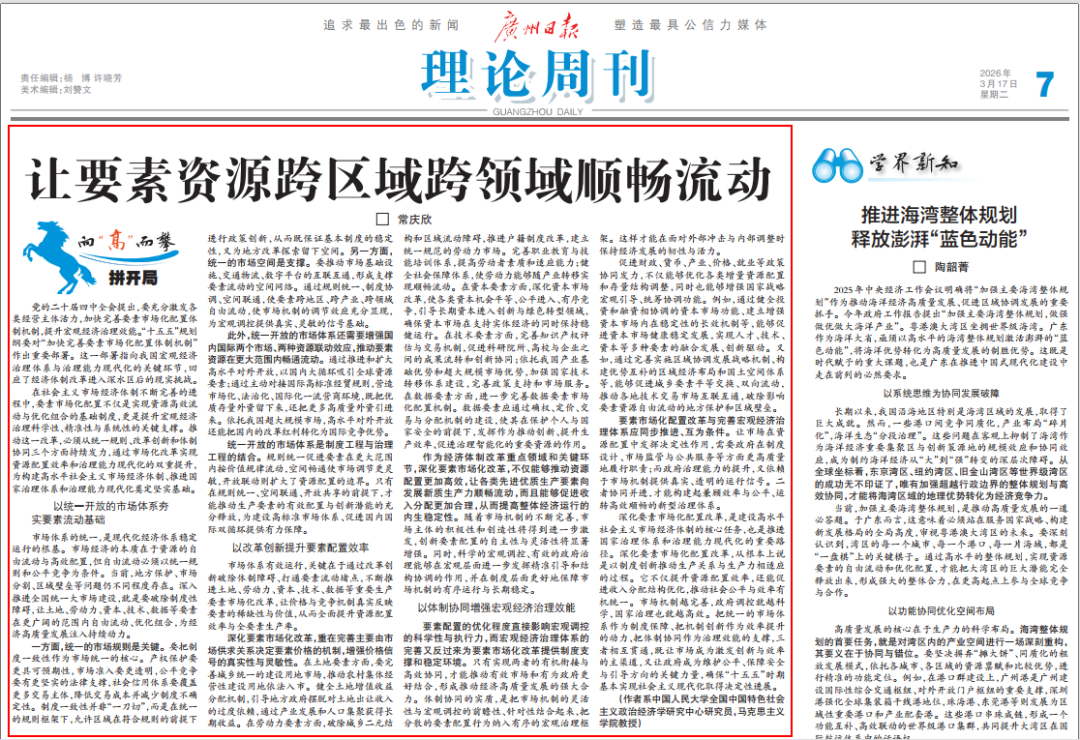 在社会主义市场经济体制不断完善的进程中,要素市场化配置不仅是实现资源高效流动与优化组合的基础制度,更是提升宏观经济治理科学性、精准性与系统性的关键支撑。推动这一改革,必须从统一规则、改革创新和体制协同三个方面持续发力,通过市场化改革实现资源配置效率和治理能力现代化的双重提升,为构建高水平社会主义市场经济体制、推进国家治理体系和治理能力现代化奠定坚实基础。