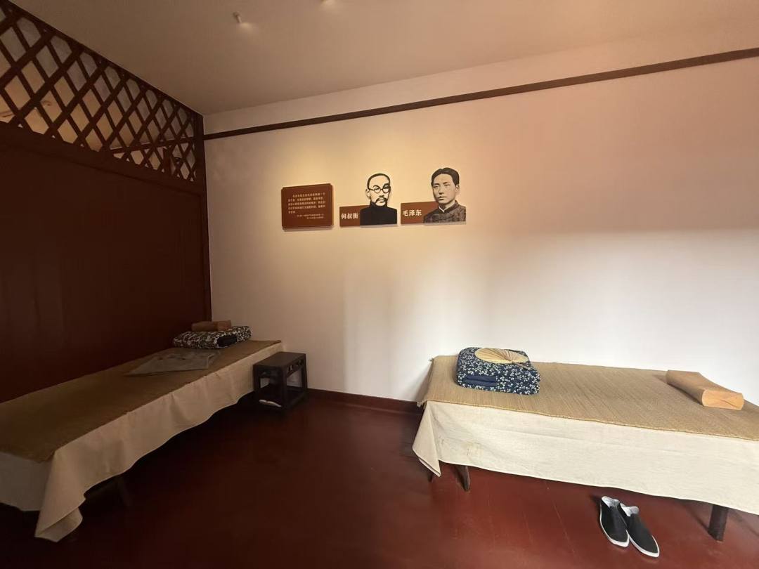 此外,结合各位一大代表的性格特征、生活习惯及建筑原本空间布局,进一步丰富场景布置元素。譬如在董必武住宿房间放置落地衣架并按照他的衣着习惯在衣架上挂了一件长衫。通过类似细节留住历史温度,让建筑的复原空间与历史场景相互印证。