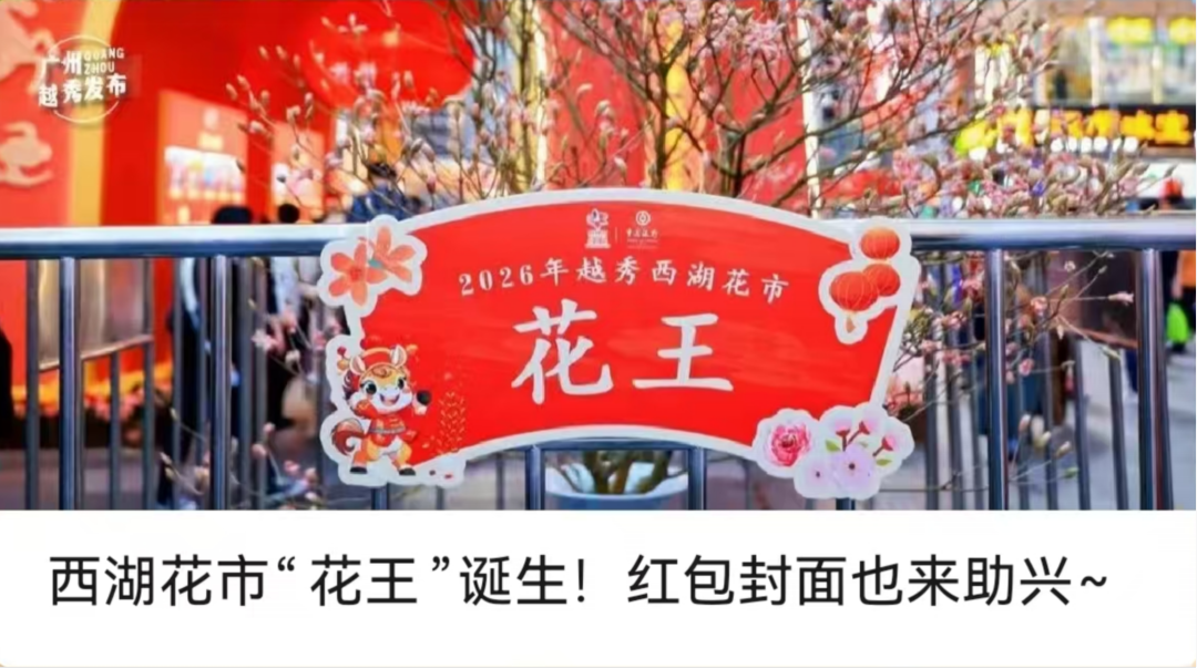 2026年越秀西湖花市期间,“广州越秀发布”微平台推出系列宣传报道,全方位展现广府年味与城区魅力。一是精准服务群众。提前发布图文、粤语视频等游览指引;重点报道开市仪式、“花王”评比等热门活动,相关推文阅读量分别达2.2万、3.3万。