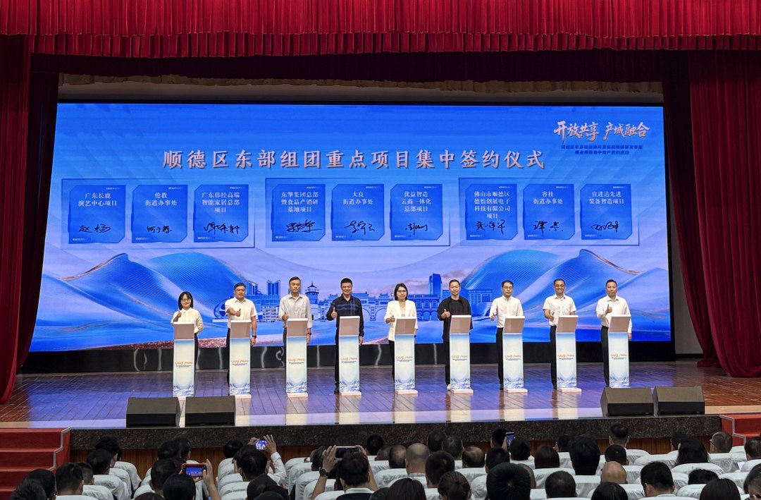此外,在集中签约环节,优益智造云商一体化总部项目、东擎集团总部暨食品产销研基地项目、佛山市顺德区德怡创展电子科技有限公司项目、宜进达先进装备智造项目、广东伟经高端智能家居总部项目、广东长鹿演艺中心项目等6个优质项目成功落地,涵盖高端装备、食品加工、智能电器、新文旅等赛道,充分展现了东部组团作为湾区投资热土的强大吸引力。