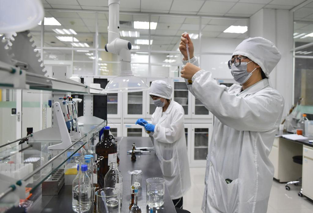 一家药企研发人员在进行样品处理。图源:新华社