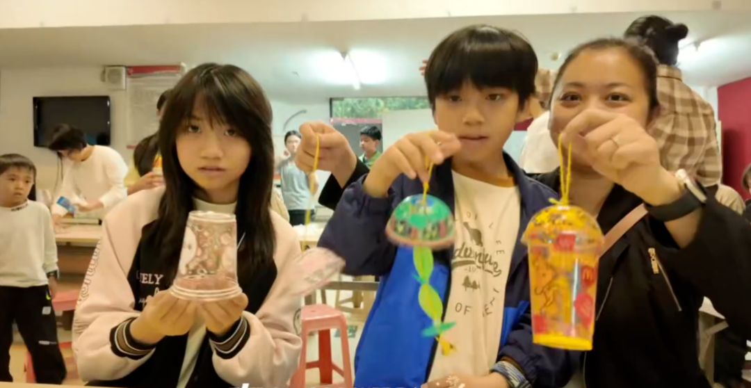 孩子们兴致勃勃地分享着自己的创意,家长们则在一旁耐心协助,共同享受着亲子协作的乐趣和艺术创作的魅力。经过一个小时的努力,所有家庭的作品汇聚成一件件装点社区花园的环保装饰品,不仅展现了参与者对美的理解和创造,更传递出珍惜资源、循环利用的环保理念。