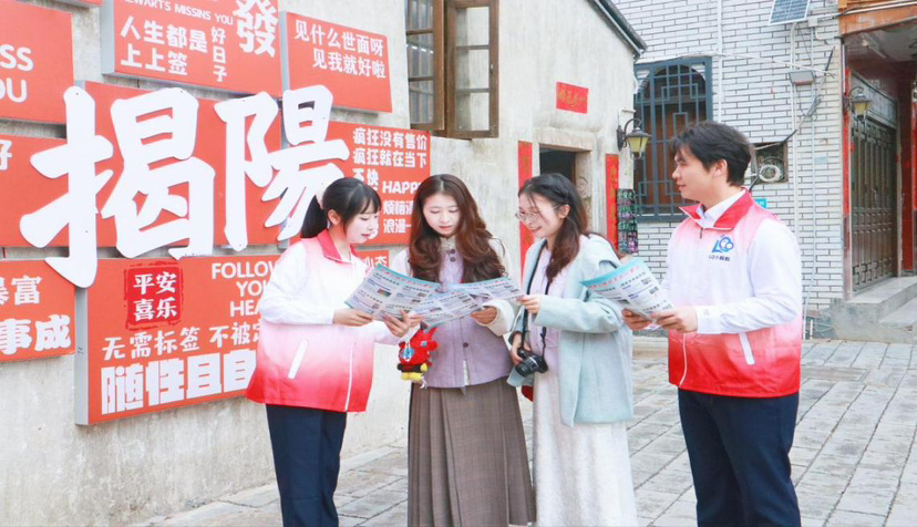 汕梅高速青年职工在揭阳古城为游客提供旅游指引并宣传交通安全