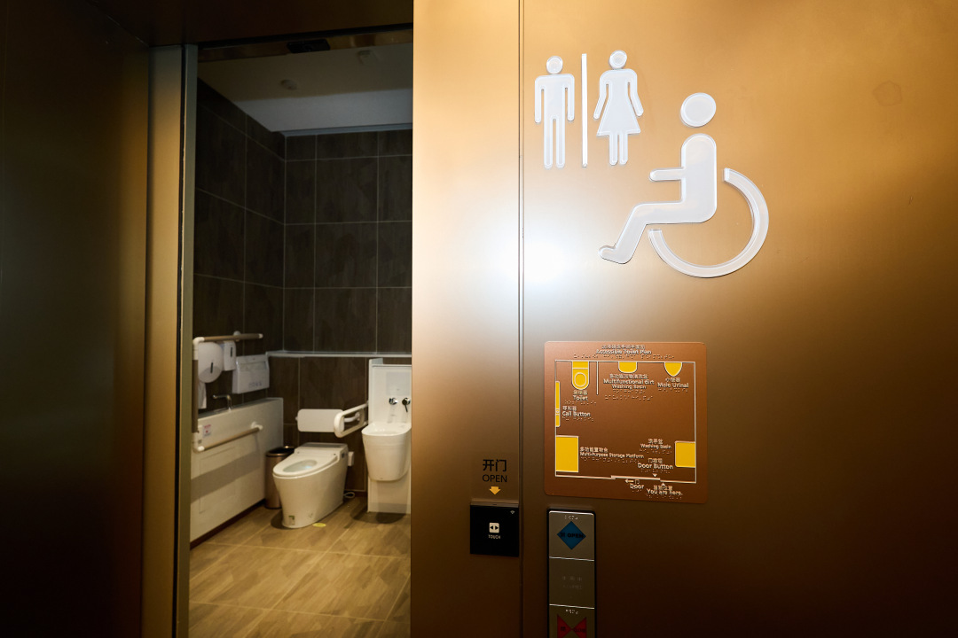 无障碍洗手间标识清晰。