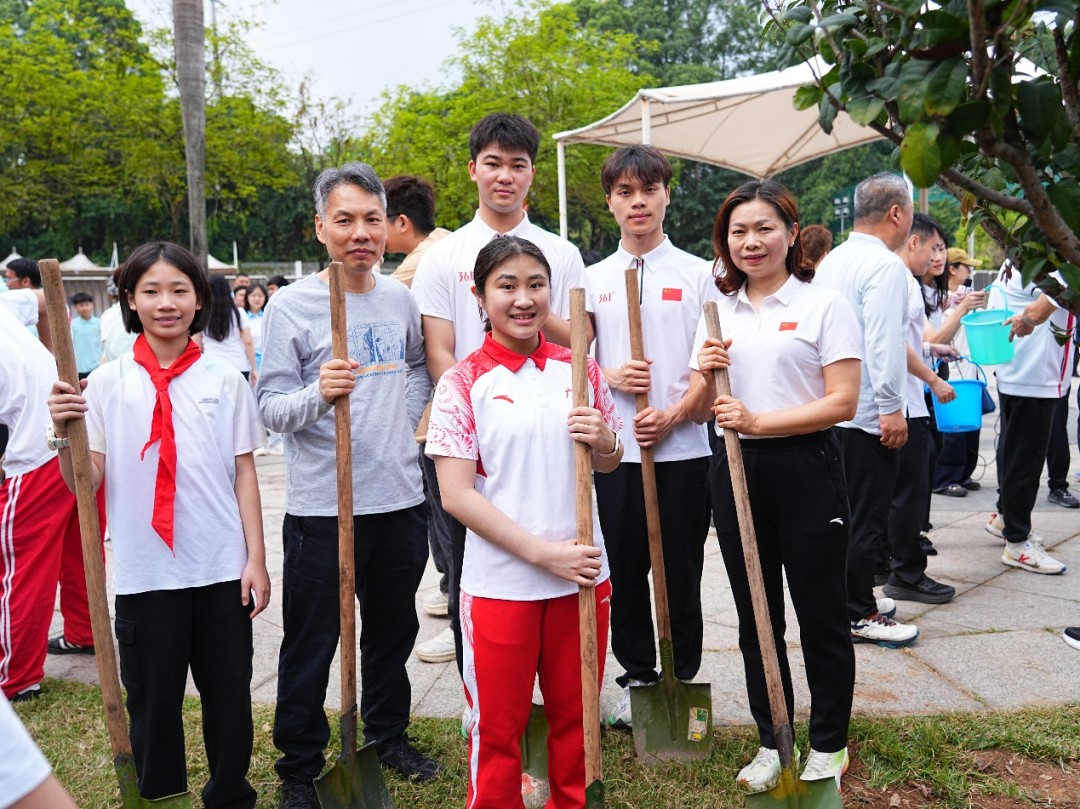 跳水奥运冠军张雁全表示,此次“冠军林”植树活动不仅是一次植绿护绿的实践,更是一场关于成长、责任与精神传承的对话。他愿尽己所能守护和浇灌广州跳水事业的“幼苗”,以身作则做好榜样,期盼后辈们早日成长为参天大树,为广州、为祖国赢得更多荣誉。他鼓励运动健儿在广东省第十七届运动会中奋勇争先,以汗水浇灌梦想,以拼搏铸就荣光。