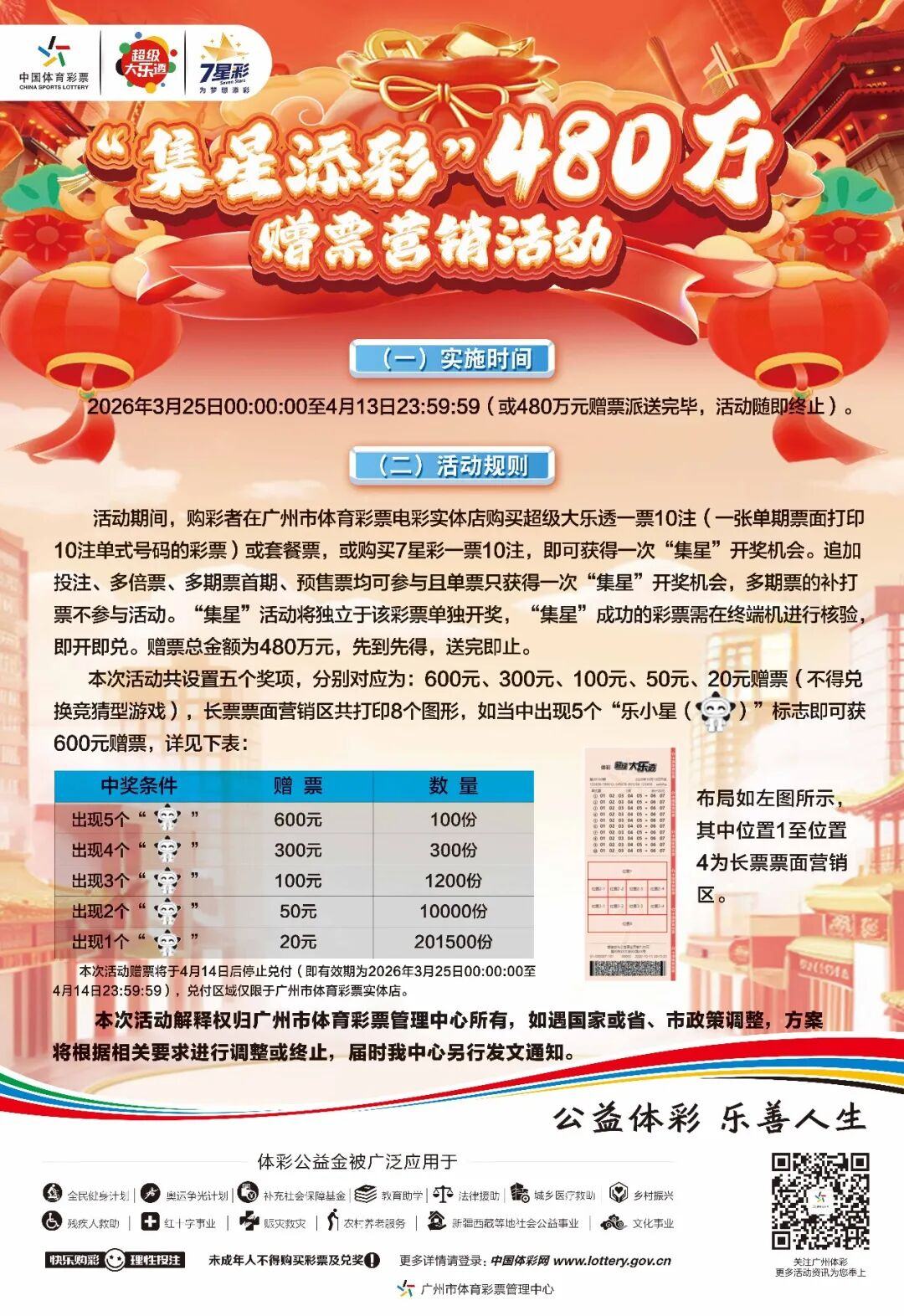 庆祝“破万亿元”的历史时刻,为回馈广大购彩者对中国体育彩票一直以来的支持与厚爱,广州体彩最新一期的集星添彩赠票营销活动在3月25日正式开启!赶紧来看海报!