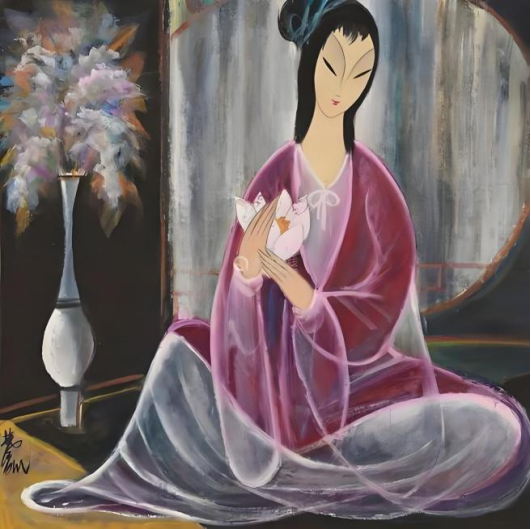在色彩的运用上,林风眠更是实现了颠覆性的突破。他摒弃了传统中国画“随类赋彩”的温和范式,吸纳印象派的光影捕捉、野兽派的色彩张力,以强烈的色彩对比与和谐的色调搭配,营造出独特的情感氛围。他笔下的仕女,浅粉与青蓝相映,温婉中透着清冷;他笔下的秋景,金黄与赭石交织,萧瑟中藏着沉静;他笔下的静物,浓墨与亮彩碰撞,朴素中蕴含生机。这种色彩表达,不追求物象的真实还原,而注重情感的传递,让色彩成为画面的灵魂,打破了东方绘画色彩的内敛与西方绘画色彩的张扬之间的壁垒,形成了“中西合璧、冷暖相济”的色彩美学。