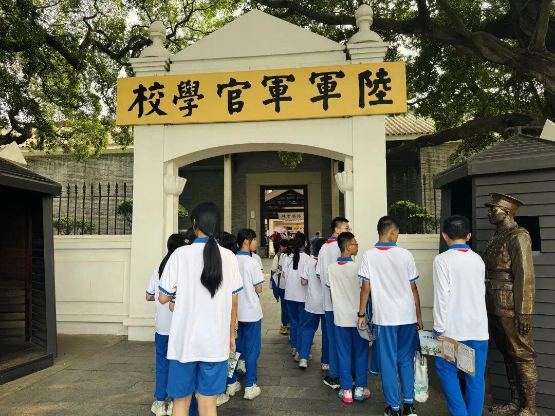 本次红棉研习课程创新融合地理、体育两大核心学科,将纪念馆的珍贵文物与特色场地转化为生动鲜活的课堂,让红色研学与学科教学深度结合。40余名学生分为两队,在纪念馆讲解老师的带领下,循着历史足迹探寻军校史迹,开启一场别样的红色研学之旅。