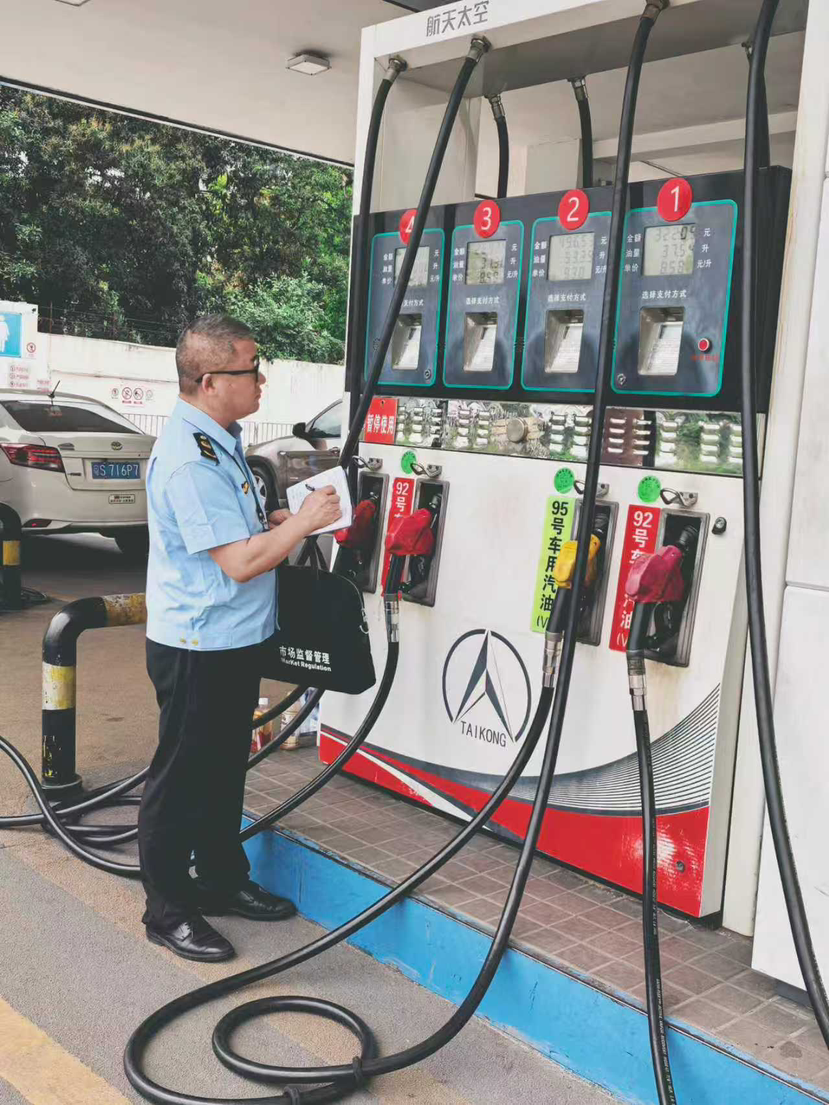 针对油价调整窗口期可能出现的计量违法行为,白云区市场监管局加大突击检查力度,重点核查加油机铅封是否完好、是否在强制检定有效期内、防作弊系统是否正常启动。今年3月至今,该局共检查加油站38家,检查加油枪407支,未发现计量失准行为。