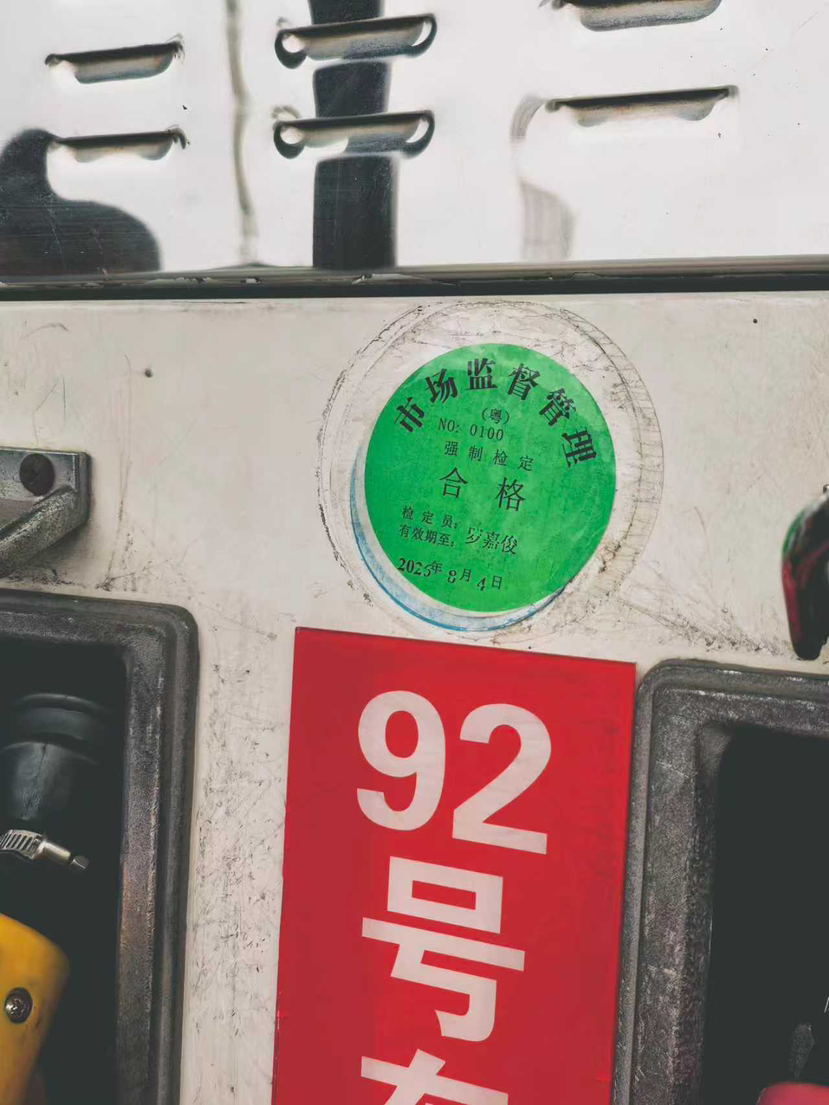 认准绿标,加油前请确认加油机显示屏归零,并查看机身是否粘贴绿色“强制检定合格”标志(有效期为6个月)。