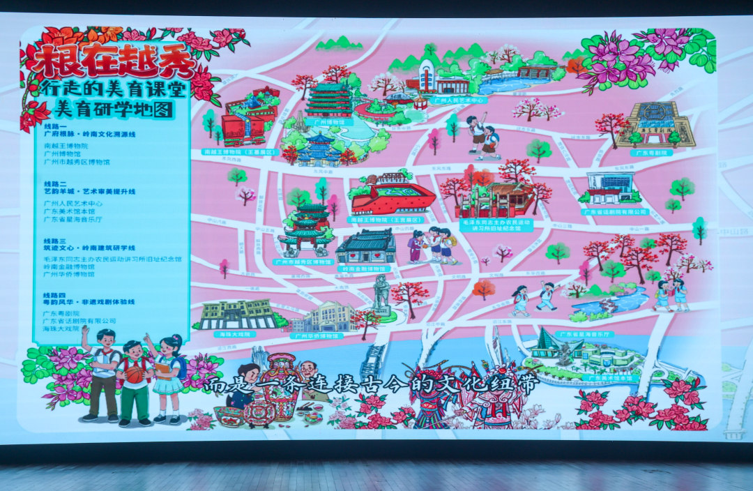 一是重磅推出“根在越秀——行走的美育课堂之美育研学地图”,彻底打破校园围墙,构建起全域覆盖、资源融通的美育新生态;二是首批12家“越秀区美育馆校合育共建基地”获授牌,保障“行走的美育课堂”扎实落地。两大举措标志着越秀“文博美育矩阵”模式从资源协作迈入课程共建、机制化运行的深度融合新阶段。三是主动融入粤港澳大湾区发展大局。共建湾区美育联盟,共享优质课程与师资,共办艺术展演与研学交流,打造具有国际影响力的湾区美育品牌,形成优势互补、协同发展的大湾区美育共同体新气象。