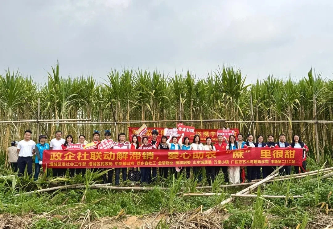 在中新镇万果小镇内,蔗农们面临着甘蔗“丰产不丰收”的难题。在增城区委社会工作部、增城区民政局、中新镇政府的联合指导下,一场政企社联动的助农行动迅速展开。