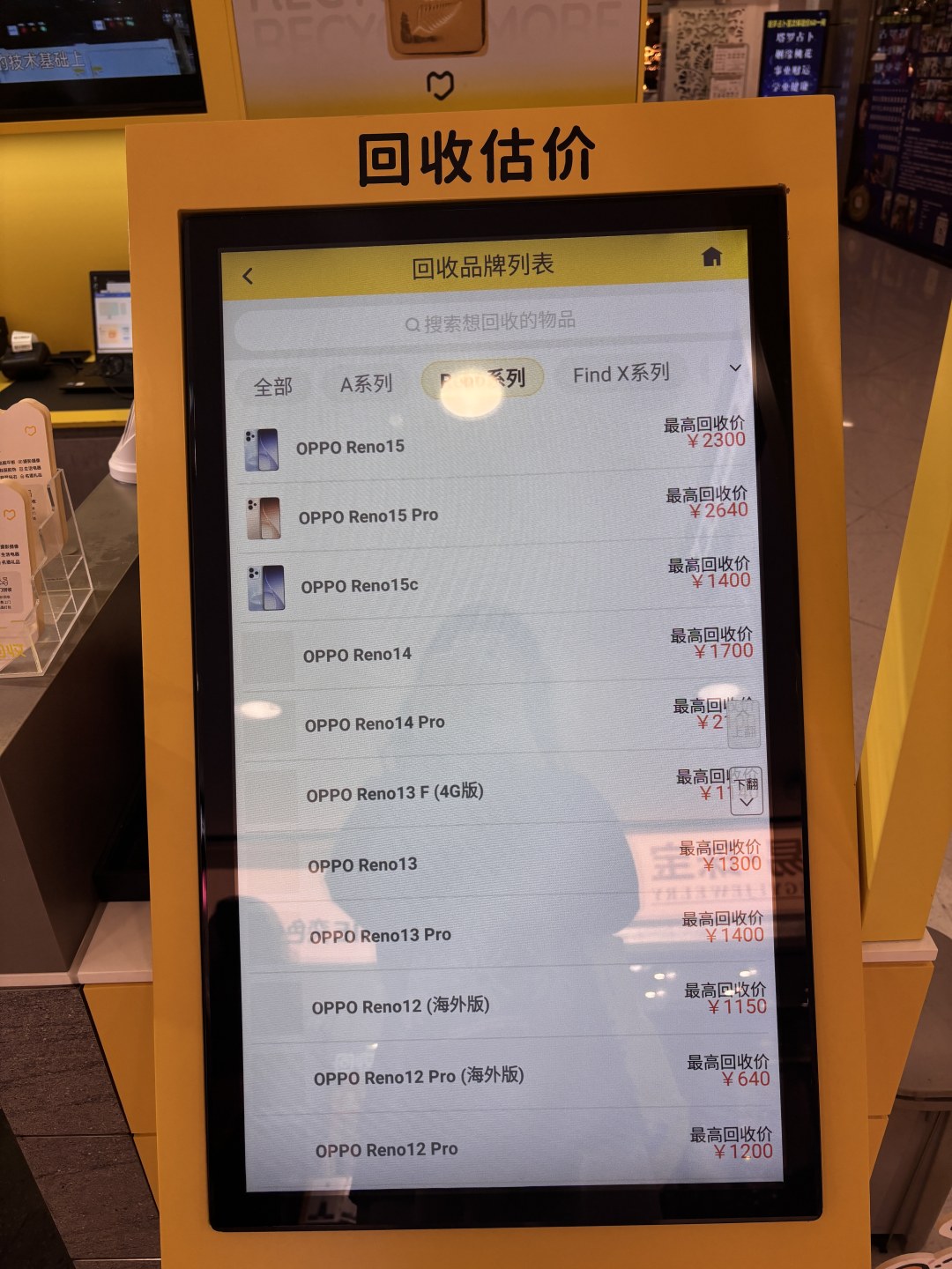 在岗顶一家二手手机回收店内,记者以消费者身份咨询了一部OPPO Reno系列旧手机的回收价格。商家查询后表示,该机型较老,给出200元的报价。记者随后走访了广州市内四个不同商家,报价均在180元至200元之间浮动。其中一位商家透露,这款机型在半年前估价在100元左右,“现在比之前涨了百十来块钱。”